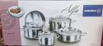 یک قابلمه سایز ۲۴ به همراه در استیل یک قابلمه سایز ۲۰ به همراه در استیل یک قابلمه سایز ۱۶ به همراه در استیل یک تابه گرد دو دسته سایز ۲۴ به همراه در استیل یک تابه گرد تک دسته سایز ۲۴ بدون در